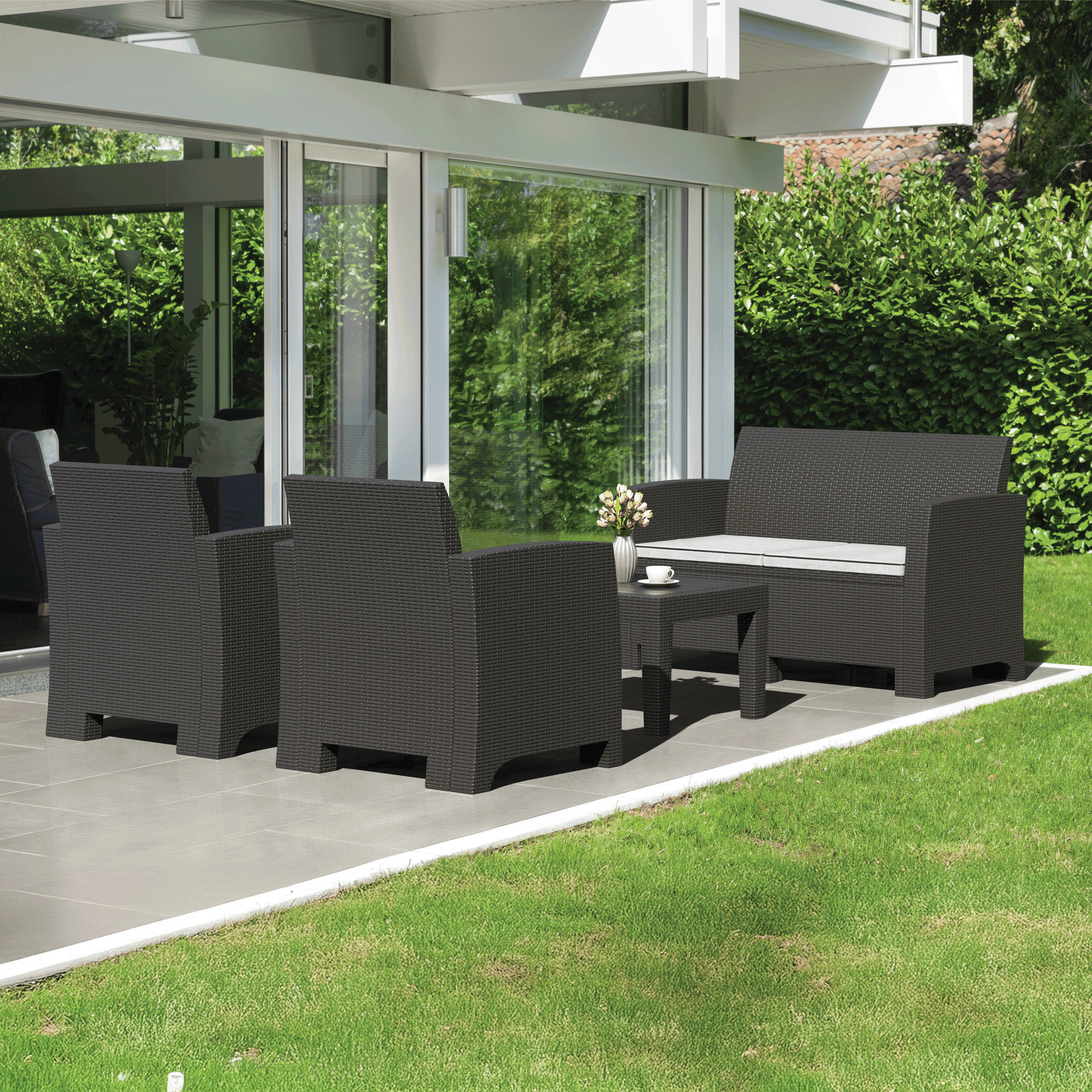 From the balmy first days of spring to the refreshing cool of fall, your outdoor furniture lets you enjoy time with friends and loved ones in the great outdoors. Thankfully, with the Cedar Rattan Sofa Set, it can feel just as comfortable as gathering in an indoor living room - this attractive 4-piece set includes a sofa, two armchairs, and a modern rectangle coffee table as the perfect finishing touch. Not only does this plastic-based set offer better longevity and weatherproof performance over wicker or wooden rattan furniture, it uses a chic modern color palette to fit in with your existing outdoor decor. The Cedarrattan weave on all bases also features small drainage holes to keep the top surfaces dry, even if the clouds roll in.