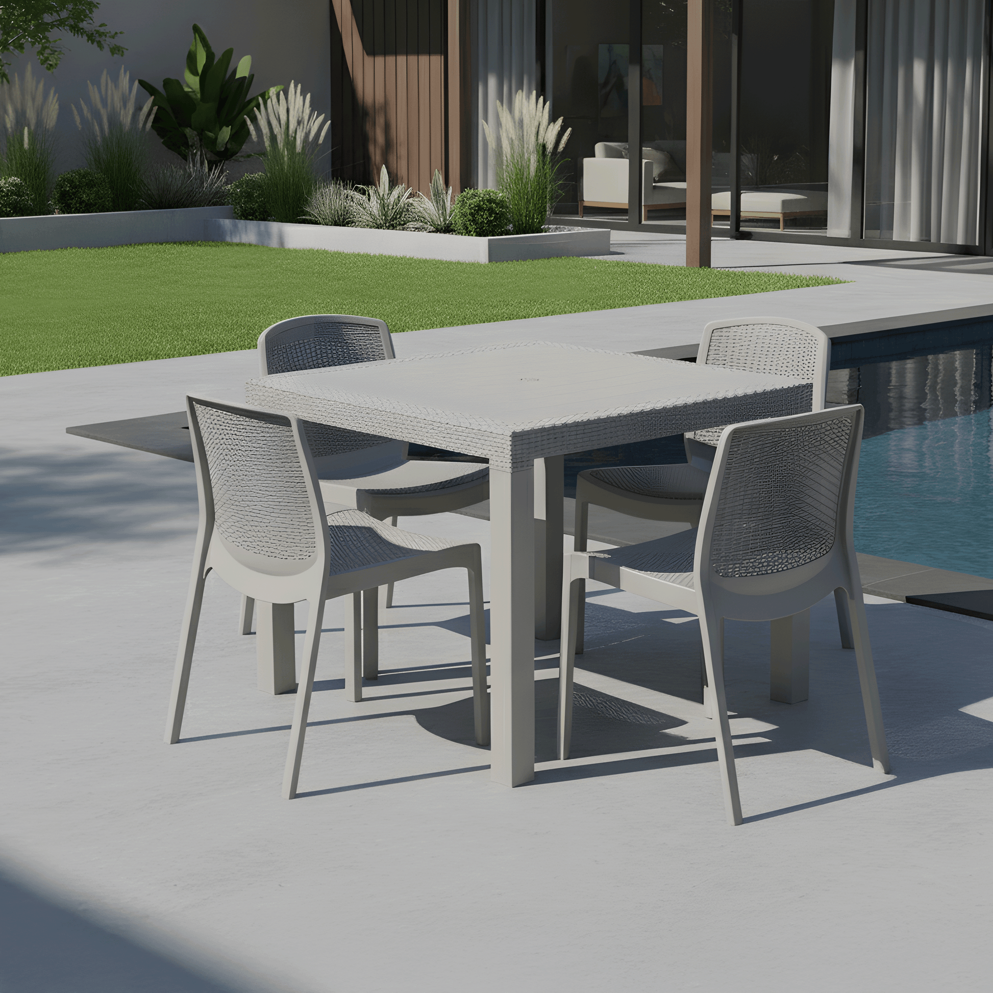 Duramax Rattan Square Table with 4 Duramax Chairs for the Backyard, Garden and Patio (2 Colors)